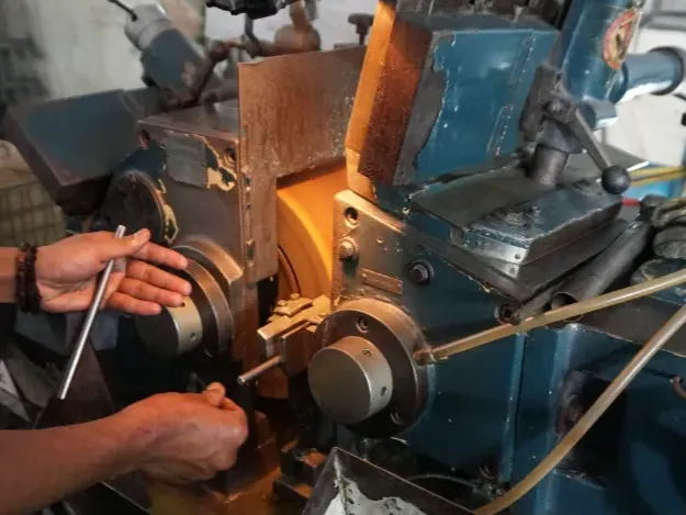 Proses permesinan yang menggunakan roda abrasif untuk menghaluskan atau mengurangi ketebalan material dan benda kerja